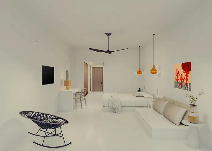 Koukoumi Vegan Boutique Hotel Ano Mera met 18 kamers ligt op een rijafstand van 15 minuten van het Klein Venetië en biedt wifi in openbare gebieden en parkeerplaatsen. Dit hotel in Ano Mera, met een banketzaal, is binnen 7 km afstand van het Landbouwmuseum gelegen.